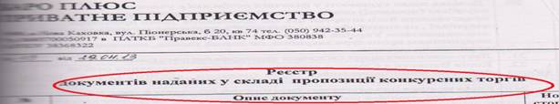 1. Відповідно до переліку документів, які необхідно надати Учасниками разом із ціновою пропозицією (додаток 1 ДКТ), Замовником не вимагалось надання реєстру документів. При цьому, «Реєстр документів, наданих у складі пропозиції конкурсних торгів» подано обома Учасниками з однаковим оформленням у вигляді таблиці та назви документу.
