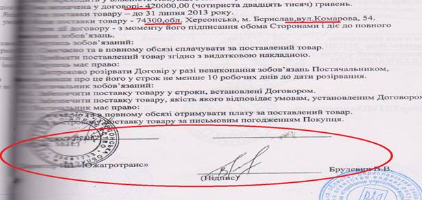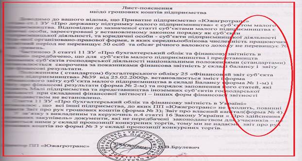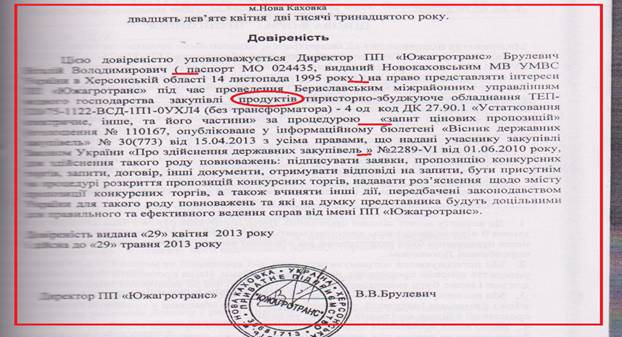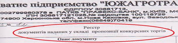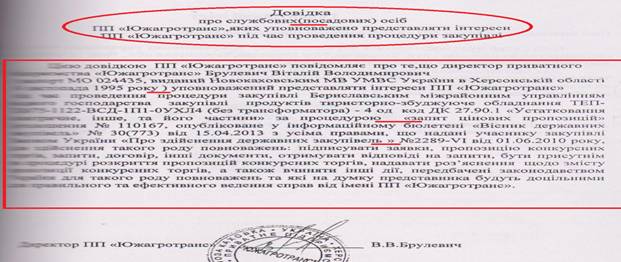 За інформацією ПП «ЮЖАГРОТРАНС», наданою листом за вх.№2-47507 від 25.08.2015на вимогу Відділення від 28.07.2015 №2-47/507, під час підготовки пропозиції конкурсних торгів послуги третіх осіб не використовувались, документація пропозиції конкурсних торгів готувалась директором та засновником підприємства Брулевичем Віталієм Володимировичем з використанням накопиченого досвіду та власних напрацювань.