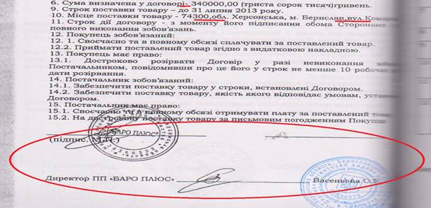 - обмін документами, що підтверджується отриманням довідок про відсутність заборгованості з податків ПП «ЮЖАГРОТРАНС» та ПП «БАРО ПЛЮС» однією людиною, а саме Васеньовою О.В., яка є засновником та керівником ПП «БАРО ПЛЮС»;