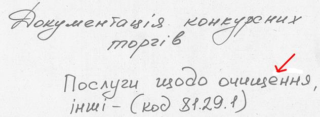 Однак, Учасники при оформленні конвертів припустилися спільної помилки при написанні предмета закупівлі, а саме у центрі конвертів Учасників зазначене наступне: «Документація конкурсних торгів Послуги щодо очищення», що візуально має такий вигляд: