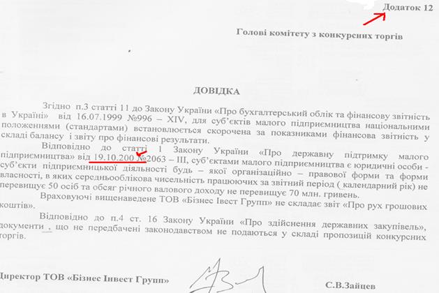 Окрім того, у тексті досліджуваної довідки Учасники посилаються на норми Закону України «Про державну підтримку малого підприємництва», однак при зазначенні дати опублікування цього нормативного документа припустилися однієї й тієї ж помилки, а саме - пропустили одну цифру у році видання закону, що має такий вигляд: «…від 19.10.200». Тобто позначення року містить лише три цифри, а має нараховувати у своєму складі чотири цифри.