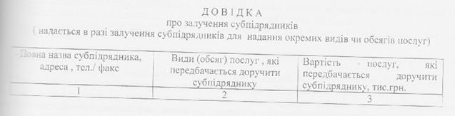 9. Частиною 3 ДКТ передбачено надання у складі ПКТ інформації про субпідрядні організації, яких Учасник планує залучити для надання послуг, у вигляді табличної форми за зразком згідно з додатком № 8.