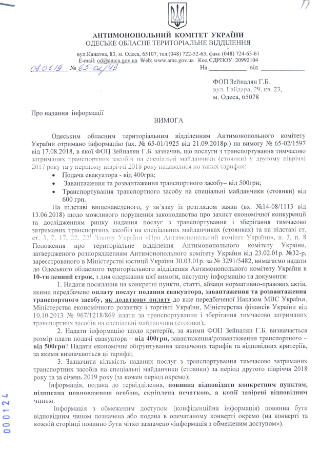 Вимога №65-02/41 від 08.01.2019 про надання інформації ФОП Проніна Г.Д.